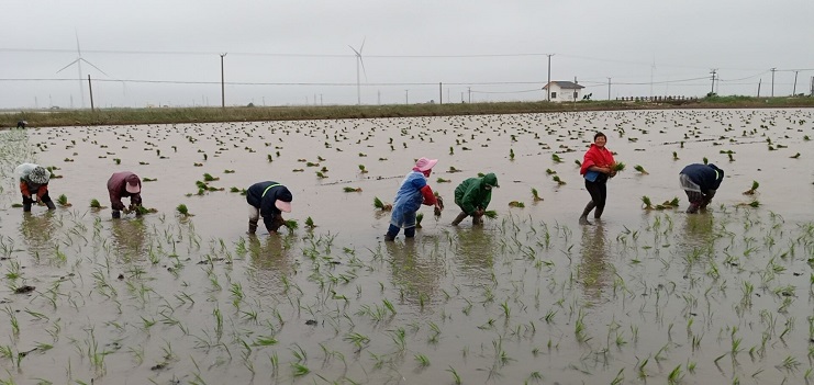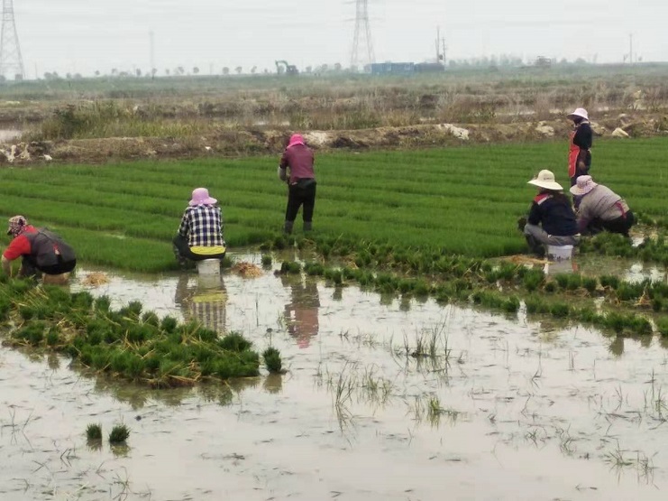 連日來,工人們克服天氣炎熱等因素,搶時(shí)間趕進(jìn)度。在明威公司稻田里隨處可見一片繁忙景象:拔秧的,捆秧的,插秧的,她們按照勻、整、齊的標(biāo)準(zhǔn),不一會(huì)兒,一排排秧苗整齊地立在了水田中,構(gòu)成一幅美麗的田園畫卷。