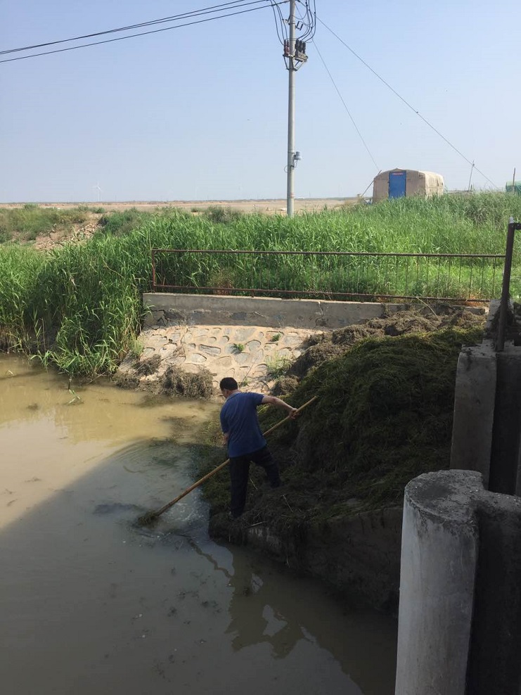 現(xiàn)正值養(yǎng)殖戶用水高峰期,該公司淡水養(yǎng)殖區(qū)泵站晝夜不停開機,保證養(yǎng)殖用水需求。由于位于埒南大阜二圩泵站水草較多,河水流動不暢,影響機泵打水,為了確保養(yǎng)殖淡水的充足供應,養(yǎng)殖服務公司組織全體人員投入到清理泵站撈水草、雜物的工作中來。此次勞動分為兩個班制輪流對河道進行清理,確保泵站供水工作不受阻。(楊云)