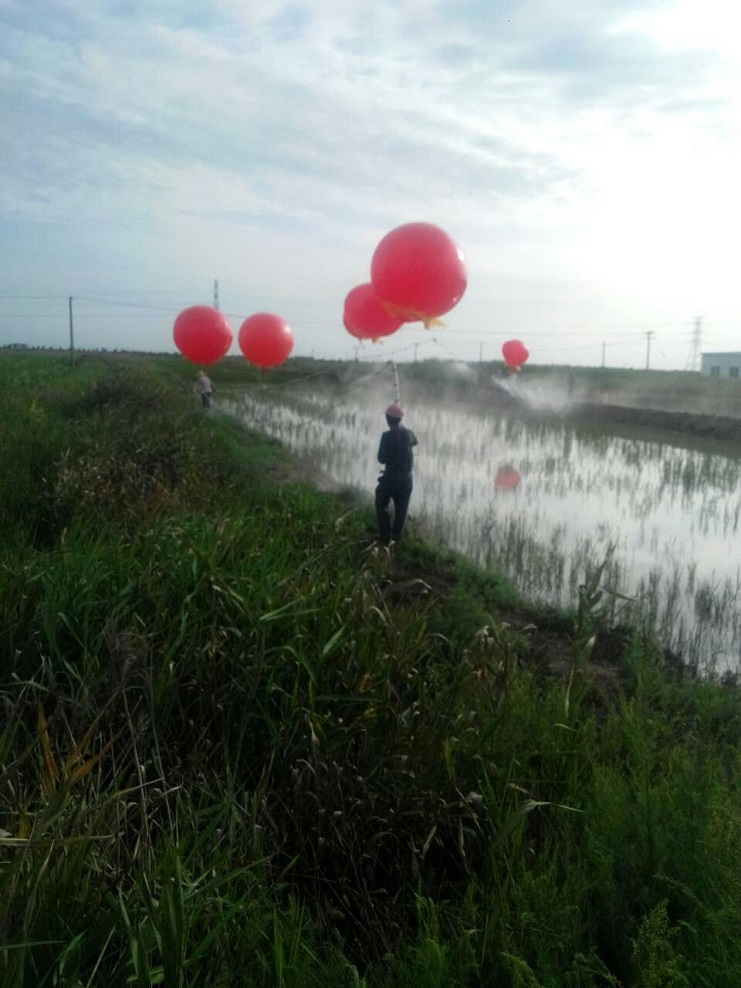 實業(yè)公司農(nóng)業(yè)分公司加大試驗田管理力度,確保水稻正常生長。 分公司埒南大阜二圩水稻現(xiàn)在正值灌漿期,稻瘟病、紋枯病、鉆心蟲等各種病蟲害隨之而來。近日,為減少人為對水稻的損壞,農(nóng)業(yè)分公司利用新型技術(shù),采取氣球灑藥的方法,對稻田進行噴灑,將防蟲治病工作做到實處。(實業(yè)公司)