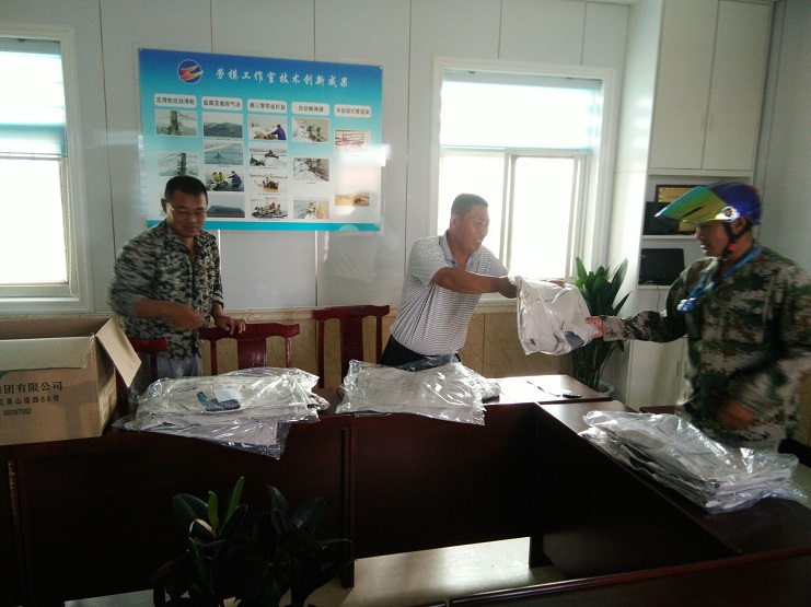 隨著天氣的炎熱,為進一步規(guī)范一線員工的著裝,提高員工工作的積極性,我公司在7月25日下午發(fā)放夏季工作服,此次發(fā)放的工作服布料采用純棉制造,款式新穎,穿起來整體樸素、大方,有精神,有朝氣、舒適透氣,班長洋溢著笑容說:“決不辜負場領導的關心,工作服發(fā)的正是時候,我們要以飽滿的熱情干好本著工作,以更好地工作業(yè)績回報公司”。 新河制鹽分公司: 江德前 2018年7月25日