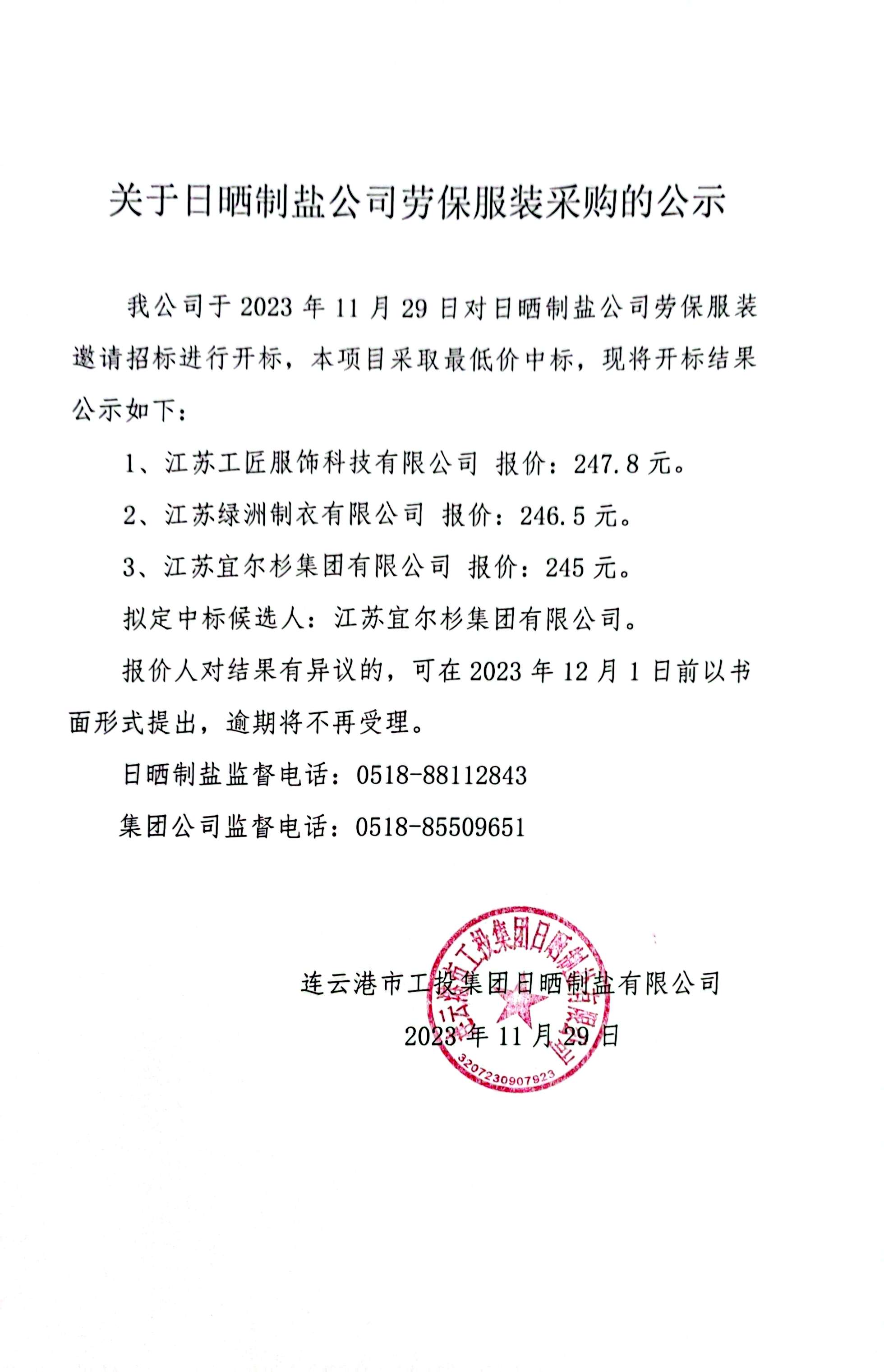 關(guān)于日曬制鹽公司勞保服裝采購的公示