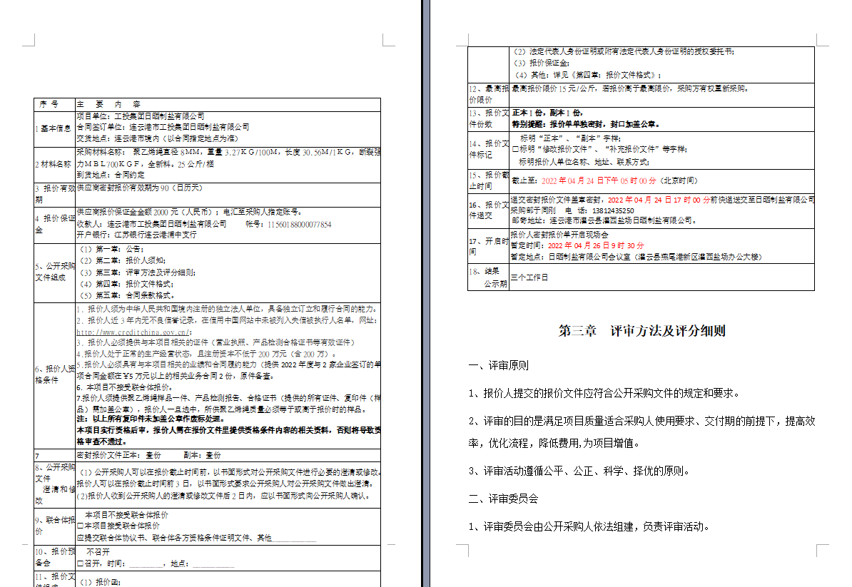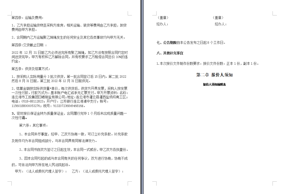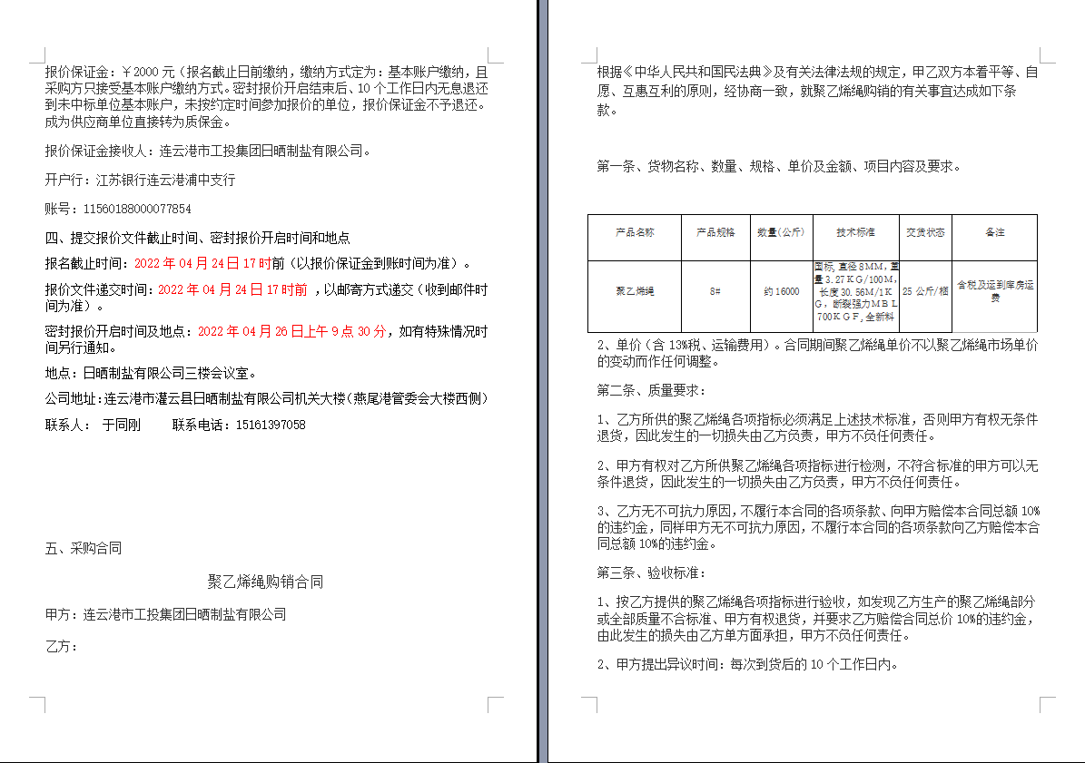 連云港市工投集團(tuán)日曬制鹽有限公司聚乙烯繩采購項目