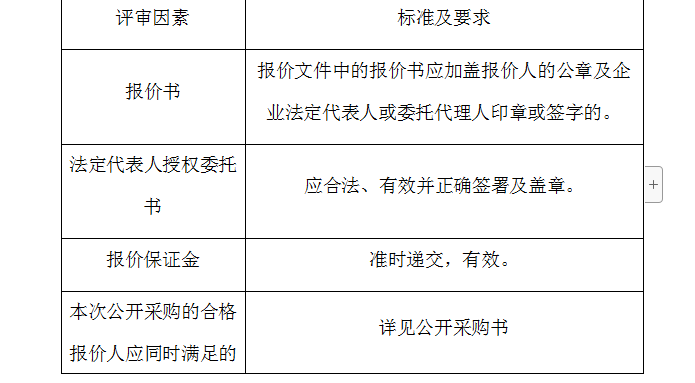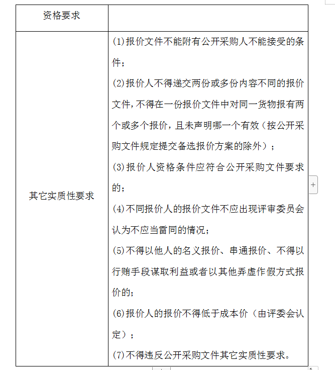 2、評審委員會將根據(jù)以下標(biāo)準(zhǔn)對各報價人進(jìn)行初步評審,有一項(xiàng)不符合要求的,作否決報價處理,不進(jìn)入詳細(xì)評審。