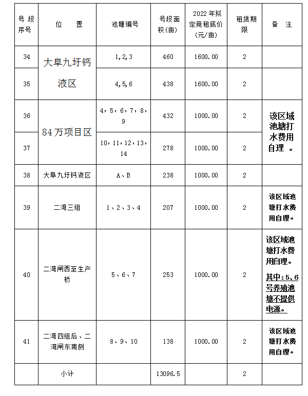 根據(jù)連云港市工業(yè)投資集團有限公司關于資產(chǎn)租賃相關文件精神的要求及本公司淡水養(yǎng)殖池塘實際情況,經(jīng)灌西投資公司池塘租賃領導小組研究,報請集團公司同意,2022年現(xiàn)對下述養(yǎng)殖池塘公開對外競租。