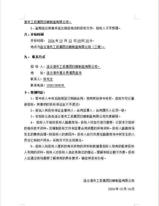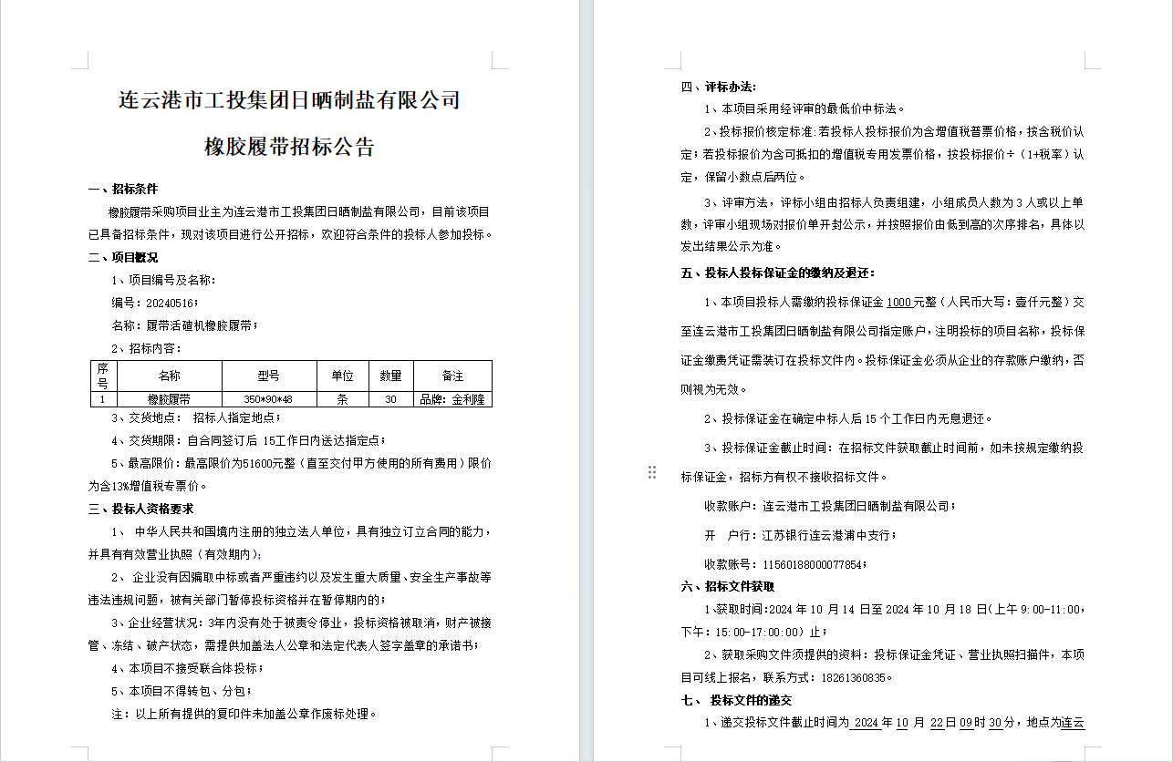 連云港市工投集團日曬制鹽有限公司橡膠履帶招標(biāo)公告