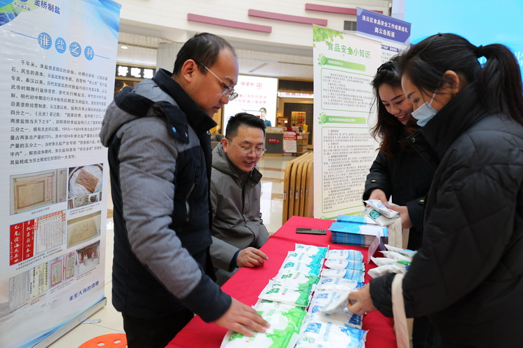 12月21日上午,我公司到連云區(qū)嘉瑞寶廣場參加連云區(qū)2023年食品安全宣傳周活動?;顒又?,我公司員工認真向咨詢者宣傳食鹽相關知識,并耐心解答他們提出的問題,引導他們安全選購食鹽、科學食用食鹽。(金宣)
