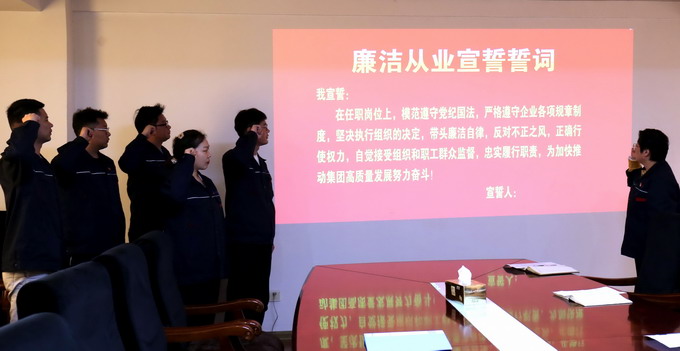 會(huì)議傳達(dá)了集團(tuán)紀(jì)委《關(guān)于扎實(shí)開(kāi)展年輕干部“廉政教育月”活動(dòng)的通知》文件精神,簽訂了《廉潔承諾書(shū)》、發(fā)放了《家庭助廉倡議書(shū)》和進(jìn)行廉潔從業(yè)宣誓。