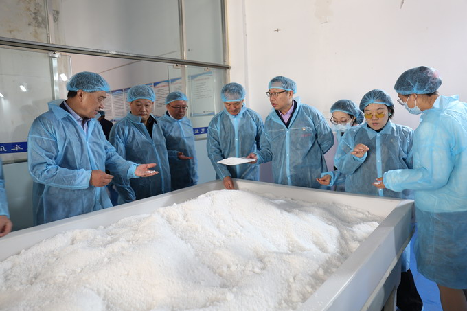 10月13日上午,蘇鹽協(xié)會副理事長伏運景帶領(lǐng)省戰(zhàn)略與發(fā)展研究中心及省經(jīng)濟和信息化研究院相關(guān)研究人員一行,到我公司開展編撰省鹽行業(yè)年度發(fā)展報告相關(guān)企業(yè)調(diào)研。集團公司黨委委員、總會計師匡友本,我公司主要領(lǐng)導(dǎo)陪同調(diào)研。伏運景一行參觀了公司雪花鹽車間、包裝鹽車間,聽取公司基本情況和發(fā)展情況介紹。伏運景對我公司充分重視本次調(diào)研工作表示感謝,肯定了鹽改以來我公司先導(dǎo)性發(fā)展經(jīng)驗和成就。(金宣)