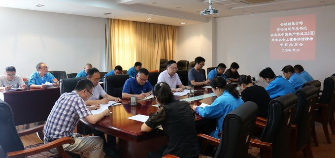 7月5日上午,我公司召開黨委理論中心組(擴大)學習會,專題學習習近平總書記在慶祝中國共產(chǎn)黨成立100周年大會上的重要講話精神。公司黨委書記、董事長、總經(jīng)理朱桂玉主持學習會。公司領導班子成員及其他黨委理論學習中心組成員,各車間單位黨政負責人,機關各部室負責人參加學習會。