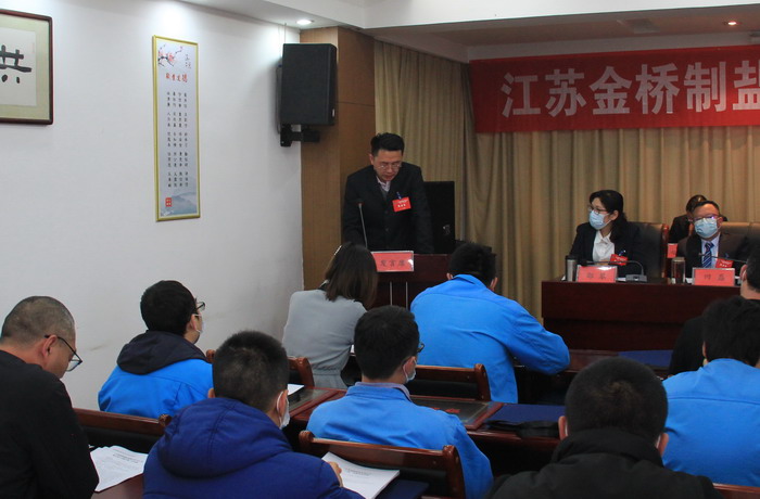 大會簽訂了《2021年度集體合同》、《2021年度經(jīng)營認(rèn)標(biāo)責(zé)任書》,與會代表認(rèn)真審議通過了總經(jīng)理工作報告,通過了大會決議、有關(guān)方案和意見。加工鹽車間、包裝鹽車間、銷售部依次作了表態(tài)發(fā)言。大會表彰了第九屆“金橋杯”勞動競賽、2020年“大干四季度”勞動競賽的先進集體和先進個人以及2020年度“金橋工匠”。(金宣)
