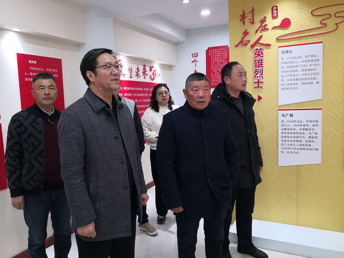 曹開明一行參觀了該村黨員活動室、黨史室、村史陳列室,聽取了尹蕩村黨總支書記孫克玉對該村概況的介紹。雙方就黨史學習、文明共建和黨建工作開展等方面進行了深入的溝通交流。