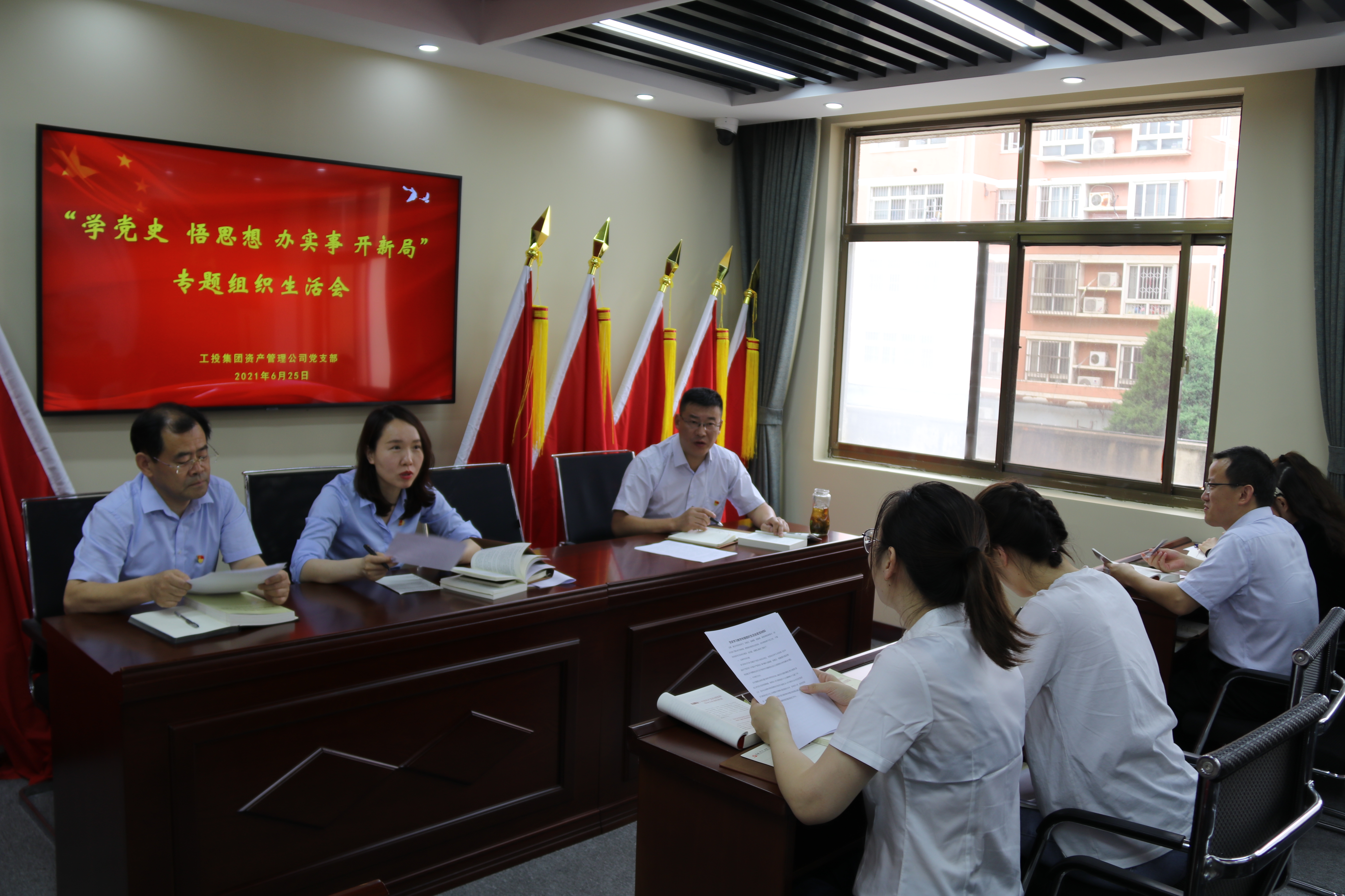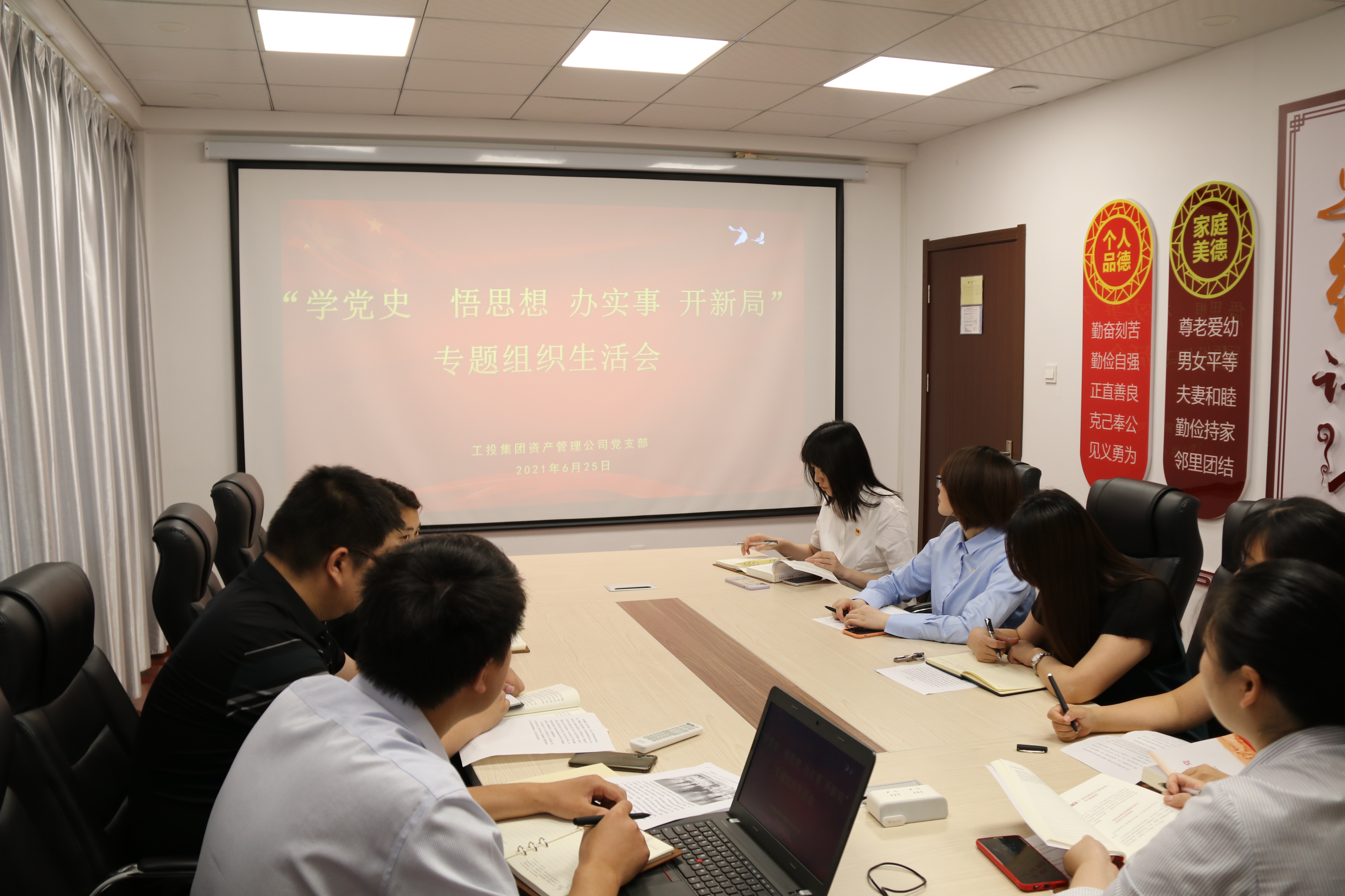 根據(jù)集團(tuán)黨委、公司黨支部黨史學(xué)習(xí)教育工作安排,6月25日,資產(chǎn)管理公司黨支部以“學(xué)黨史 悟思想 辦實(shí)事 開新局”為主題召開專題組織生活會(huì)。會(huì)議分四個(gè)黨小組開展,支委領(lǐng)導(dǎo)分赴各黨小組,以普通黨員身份開展黨性分析,一起學(xué)習(xí)討論、一起交流心得、一起接受思想教育。
