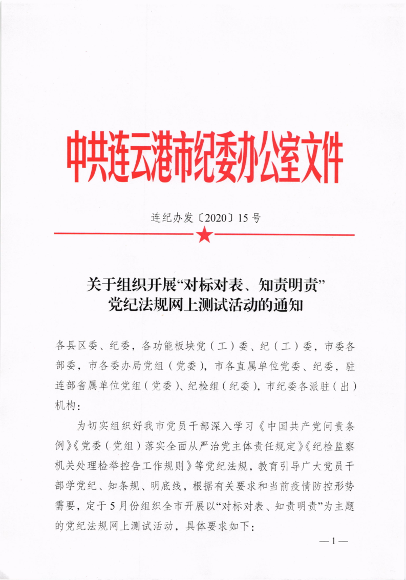 關(guān)于組織開展“對(duì)標(biāo)對(duì)表、知責(zé)明責(zé)”黨紀(jì)法規(guī)網(wǎng)上測(cè)試活動(dòng)的通知