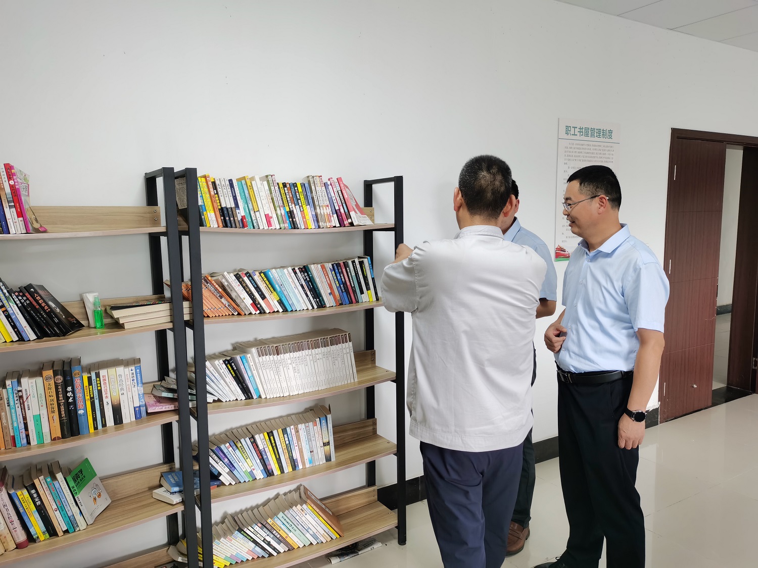 在實地參觀過程中,深入了解了書屋建設(shè)、布局、管理、圖書分類及更新、登記等具體方面的內(nèi)容,并就相關(guān)黨建、工會活動開展情況與神特新材料黨支部副書記、工會主席袁忠等進(jìn)行了交流討論。
