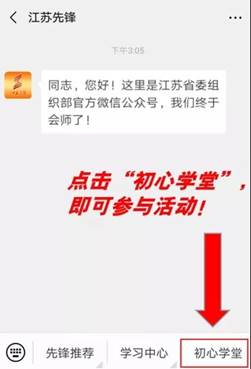 各單位黨群工作部: 為引導(dǎo)廣大黨員干部認(rèn)真學(xué)習(xí)《習(xí)近平談治國理政》第三卷,推動黨的科學(xué)理論“飛入尋常百姓家”,“江蘇先鋒”公眾號特開辟“初心學(xué)堂”小程序,請組織本單位黨員干部8月12日—10月30日登錄“初心學(xué)堂”小程序一起聽音頻、讀原著、悟原理?。ㄕ埜魑稽h員登陸后,單位名稱統(tǒng)一填寫為:連云港市工業(yè)投資集團(tuán)有限公司) 第一步:關(guān)注“江蘇先鋒”公眾號