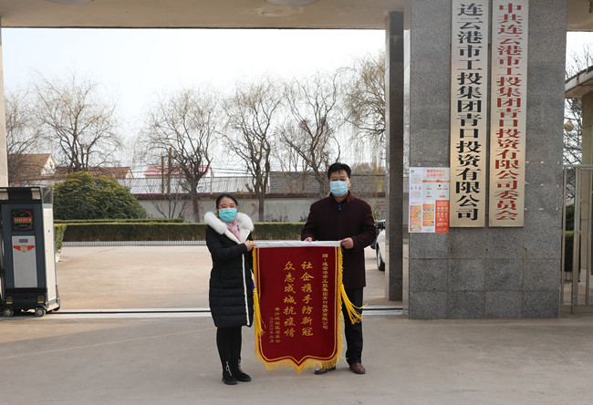 3月6日下午,開(kāi)發(fā)區(qū)猴嘴街道辦事處副主任孫寶川、黃沙坨社區(qū)黨支部書記、居委會(huì)主任程嵐一行,分別給我公司贈(zèng)送錦旗,向公司連日來(lái)積極組織黨員干部、志愿者聯(lián)合社區(qū)開(kāi)展疫情聯(lián)防聯(lián)控等工作表示誠(chéng)摯的感謝。