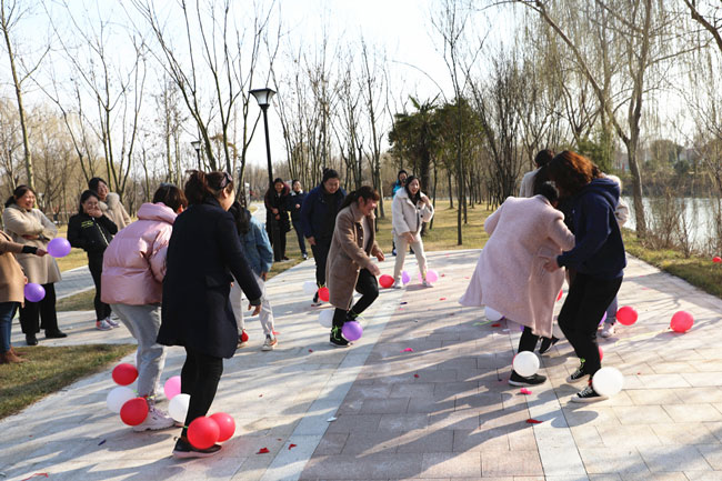 為使大家身心得到最大放松,投入戶外體驗(yàn)清新大自然,在絲路小鎮(zhèn)公園進(jìn)行了“三月女人天 別樣?jì)D女節(jié)”主題戶外活動(dòng)。游戲“你畫我猜”中,隊(duì)員們有的配合默契一猜既中,也有的用肢體艱難的比劃著,引的大家捧腹大笑?!安葰馇颉庇螒蚋亲尙F(xiàn)場(chǎng)氣氛達(dá)到沸點(diǎn),每人都放開平日工作中的嚴(yán)謹(jǐn),放松心情在場(chǎng)地上追逐奔跑。大家在游戲中收獲了歡聲笑語及片片感動(dòng),同時(shí),通過游戲提高大家的合作意識(shí)和進(jìn)取精神,營造濃郁節(jié)日氣氛。