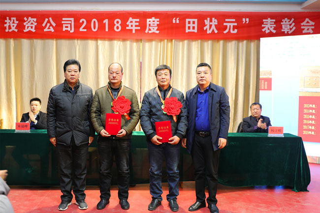 11月29日,在職工活動室隆重舉行2018年度“田狀元”表彰大會。投資公司黨委書記、董事長胡傳法及班子全體成員參會。基層副科級以上、機關(guān)全體管理人員及部分條田工參加。會議由投資公司黨委副書記、工會主席史祥平主持。