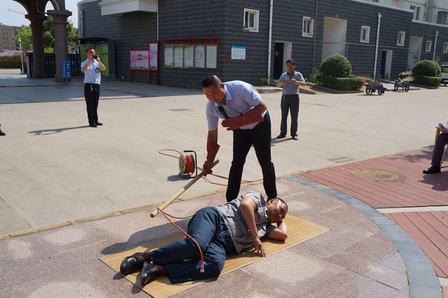 ? ? ? ? 為切實(shí)提高員工的安全防護(hù)意識(shí),提升在應(yīng)急突發(fā)事件情況下快速反應(yīng)處置能力。 6月21日下午,在鹽場(chǎng)家園小區(qū)舉辦了青口投資公司觸電危險(xiǎn)預(yù)案現(xiàn)場(chǎng)演練。公司安委會(huì)成員、各單位分管安全人員現(xiàn)場(chǎng)觀摩本次演練, 由泰祥公司組織實(shí)施并邀請(qǐng)供電公司現(xiàn)場(chǎng)指導(dǎo) 。