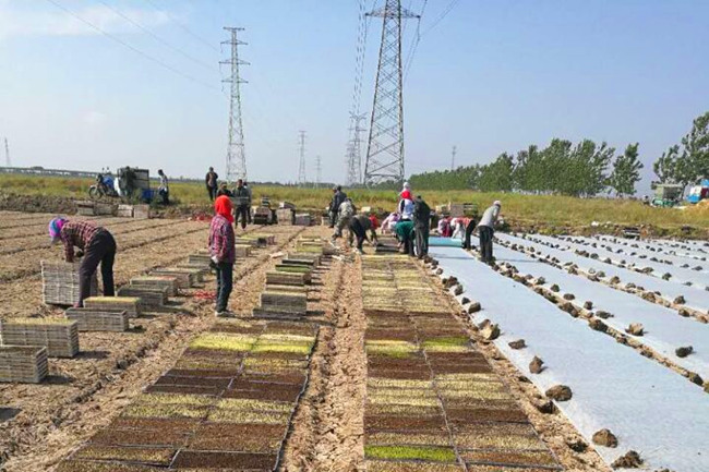 早在4月份,深入田間,就可見緊鑼密鼓的落谷育秧場景。明威公司4月15日完成秧田開溝、打埂、整平,17日開始浸種工作,并同步對秧田進行上水洗鹽排堿及上水整平;4月22日正式實施秧田落谷工作,截止26日,全面完成自種2485畝秧田落谷工作。
