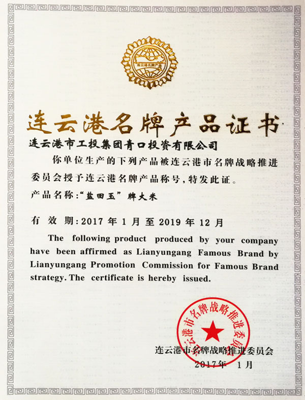 ? ? ? ? 近日,我公司“鹽田玉”品牌大米經(jīng)過連云港市名牌戰(zhàn)略推進(jìn)委員會(huì)審議,被授予2017-2019年度“連云港名牌”稱號(hào)。這是米業(yè)營銷中心對“鹽田玉”品牌創(chuàng)建的又一重大突破,也為下一步大米營銷工作打下堅(jiān)實(shí)的品牌基礎(chǔ)。(王踴)