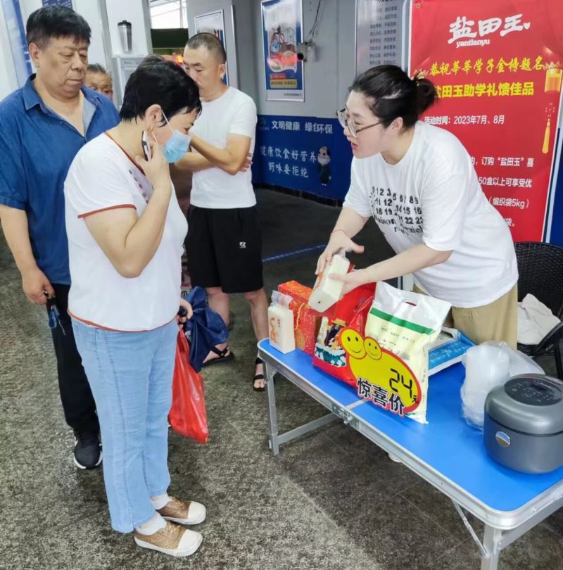 ? ? ? ?近日,米業(yè)營銷中心銷售團(tuán)隊(duì)抓住中、高考升學(xué)宴契機(jī),在巨龍路農(nóng)貿(mào)市場門口開展現(xiàn)場推介活動(dòng),向往來市民細(xì)心講解鹽田玉大米,進(jìn)一步加大宣傳鹽田玉糧油直營店的力度,獲得更多消費(fèi)者的認(rèn)可。(田鐘超)