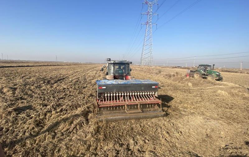 近日,在大新農(nóng)場(chǎng)自營(yíng)農(nóng)田里機(jī)聲隆隆,一臺(tái)臺(tái)機(jī)械正在播種小麥,一派熱鬧景象。這也標(biāo)志著農(nóng)場(chǎng)稻麥兩季種植模式正式拉開(kāi)序幕。