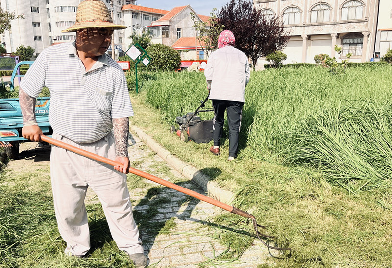 ? ? ? ?針對前期多雨天氣給綠化除草修剪帶來困難,近日,泰祥公司綠化班組利用近期少雨天時,在做好防暑降溫的基礎(chǔ)上,冒高溫?fù)屵M(jìn)度對青農(nóng)一路和廉政廣場等綠化帶進(jìn)行除草修剪工作,創(chuàng)造了良好的綠化環(huán)境。(丁海明)