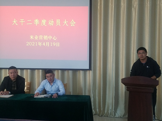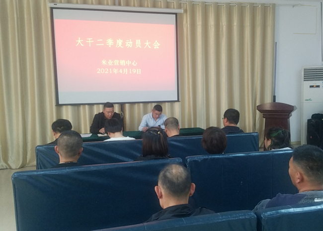 ? ? ? ?4月19日,米業(yè)營銷中心召開大干二季度動(dòng)員大會(huì),進(jìn)一步貫徹落實(shí)投資公司二屆一次職代會(huì)暨第二次工代會(huì)會(huì)議精神,結(jié)合“崗位建新功、創(chuàng)效爭一流”大干二季度勞動(dòng)競賽,規(guī)劃部署米業(yè)全年工作,分解全年銷售任務(wù),以分解量化的季度指標(biāo),以月保季、以季保年,緊扣工作目標(biāo),明確責(zé)任分工,凝心聚力,共謀發(fā)展。