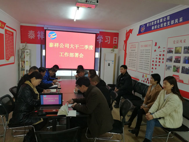 4月8日下午 , 泰祥公司召開大干二季度工作部署會議。會上董事長以完成工程量和物業(yè)費(fèi)收取為二季度工作重點(diǎn),工程負(fù)責(zé)人王璐對二季度工程施工進(jìn)行了安排,爭取二季度完成全年工程量的 50%;物業(yè)項(xiàng)目經(jīng)理汪汝光提出四種方式想方設(shè)法提高物業(yè)費(fèi)的收取率。進(jìn)一步加強(qiáng)安全隱患排查,杜絕事故發(fā)生。泰祥員工分工協(xié)作,確保大干二季度活動取得預(yù)期效果。 ( 趙萌萌 )