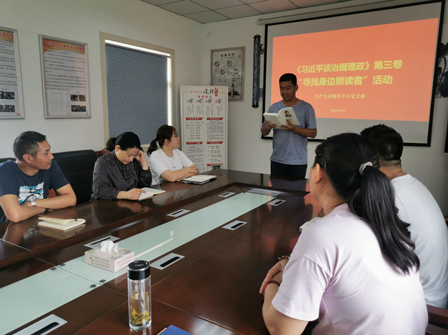 近期,生產(chǎn)生活服務(wù)中心黨支部組織黨員同志深入學(xué)習(xí)《習(xí)近平談治國理政》第三卷內(nèi)容,黨員們紛紛上臺朗讀自己喜愛的章節(jié),在學(xué)習(xí)中聯(lián)系工作理解思想理論,進一步加強對習(xí)近平新時代中國特色社會主義思想的認(rèn)識,聚焦自身實際深入學(xué),深刻感悟我將無我的情懷和自我革新的意識,切實用習(xí)近平新時代中國特色社會主義思想武裝頭腦、指導(dǎo)實踐、推動工作。(牛 瑩)