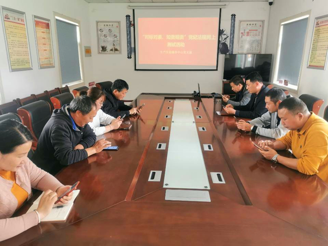 為推進“對標對表、知責明責”活動開展,引導(dǎo)黨員干部學(xué)黨紀、知條規(guī)、明底線,近日,生產(chǎn)生活服務(wù)中心黨支部組織黨員干部、管理人員參與黨規(guī)黨紀網(wǎng)上答題活動。(霍中波)