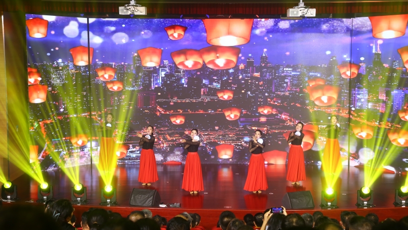 本次演出青口投資公司共選送開(kāi)場(chǎng)舞《燈火里的中國(guó)》、雙人合唱《人世間》主題曲兩個(gè)節(jié)目。為讓演出完美呈現(xiàn),6名女舞蹈隊(duì)員在工作之余辛勤編排、積極訓(xùn)練,加強(qiáng)協(xié)調(diào)配合,體現(xiàn)了積極樂(lè)觀、團(tuán)結(jié)向上的精神面貌。演出當(dāng)天,《燈火里的中國(guó)》隊(duì)員們帶著對(duì)祖國(guó)的熱愛(ài)和心中的夢(mèng)想,用婀娜優(yōu)美的舞姿向在場(chǎng)觀眾展現(xiàn)了一個(gè)燈火通明的中國(guó),配合大氣磅礴的背景視頻場(chǎng)面,點(diǎn)燃了現(xiàn)場(chǎng)的氛圍,贏得了觀眾一致好評(píng);在《人世間》主題曲的演唱中,吳典彤的歌聲悠揚(yáng)治愈,感人走心,唱出人間情暖,給觀眾以美的聽(tīng)覺(jué)享受。