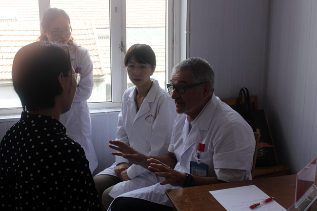 Henning Ritter為德國奧爾登堡大學附屬醫(yī)院乳腺外科教授。長期從事婦科腫瘤、產科、乳腺腫瘤治療臨床研究, 2013年獲得歐洲外科協(xié)會腹腔鏡技能金獎。在活動現(xiàn)場,Henning Ritter教授帶領市二院的專家,對前來就診的女工做了認真細致的檢查診斷,有的女工拿著之前檢查的結果請教授診斷,專家們對她們提出的問題一一做了解答,并給予會診意見。貼心的服務讓女職工足不出戶就可以享受到國際醫(yī)學專家的診斷。