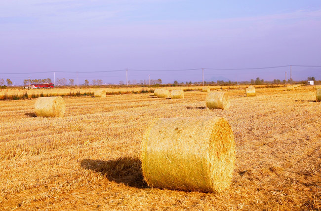 (摟草機和秸稈打包機正在地里作業(yè))