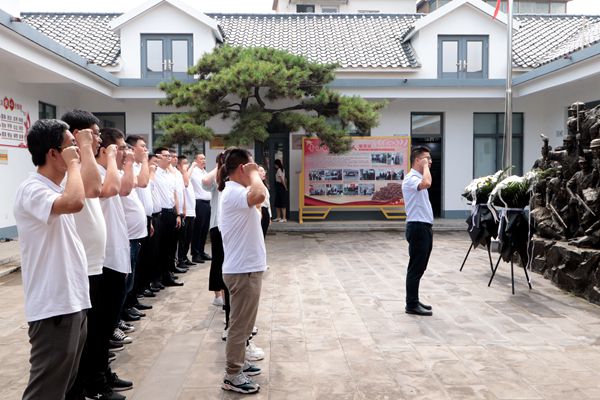 在紀念館內(nèi),黨員們在講解員的帶領(lǐng)下,學(xué)習(xí)贛榆歷史,了解十八勇士的英雄事跡,深刻體會先烈們在槍林彈雨中堅守共產(chǎn)黨人的初心和使命。在烈士雕塑前,全體黨員莊嚴肅穆,重溫入黨誓詞,回憶入黨初心,深情緬懷先烈。