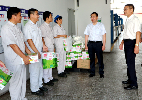 8月1日上午,集團(tuán)公司黨委副書(shū)記戴鴻鳴、工會(huì)主席劉承志來(lái)我公司慰問(wèn)生產(chǎn)一線員工,為辛勤工作的員工送來(lái)牛奶、綠豆等防暑降溫慰問(wèn)品。公司黨支部書(shū)記、副董事長(zhǎng)鄒德兵,總經(jīng)理韓立新等多位領(lǐng)導(dǎo)陪同。