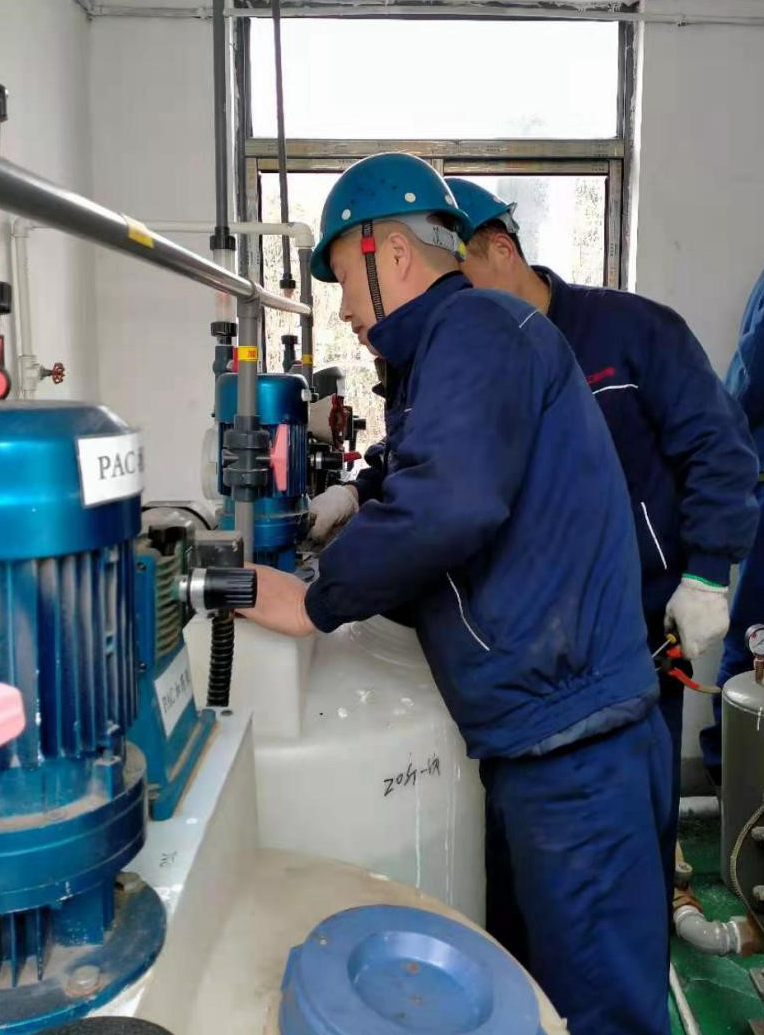 為嚴(yán)格遵守環(huán)境保護(hù)法,盡好保護(hù)環(huán)境的企業(yè)責(zé)任,公司配置了24小時(shí)運(yùn)轉(zhuǎn)污水處理設(shè)施,確保不讓一滴污水不達(dá)標(biāo)外排。(圖為2月23日上午,員工定期維護(hù)污水站設(shè)備現(xiàn)場(chǎng)。)