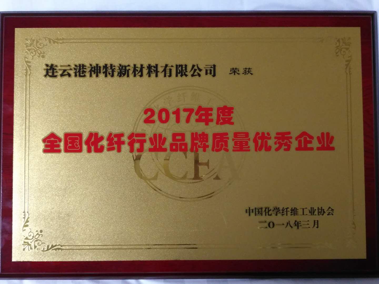 3月13-14日,由中國化學纖維工業(yè)協(xié)會主辦的“中國化纖行業(yè)高質(zhì)量發(fā)展論壇暨第四次理事會擴大會議”在上海召開。會上,神特公司榮獲“2017年度全國化纖行業(yè)品牌質(zhì)量優(yōu)秀企業(yè)”稱號。
