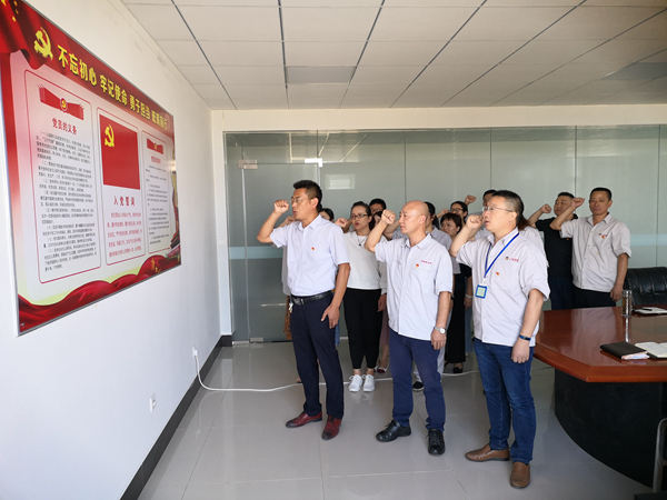 活動中,面對鮮紅的黨旗,公司黨支部副書記袁忠作為領(lǐng)誓人,帶領(lǐng)全體黨員一起高舉右手,再次莊嚴(yán)宣誓。鏗鏘恢宏的誓詞,強烈震撼著在場的每一位黨員,一字一句,神圣而豪邁,體現(xiàn)了黨員對中國共產(chǎn)黨的無限忠誠。