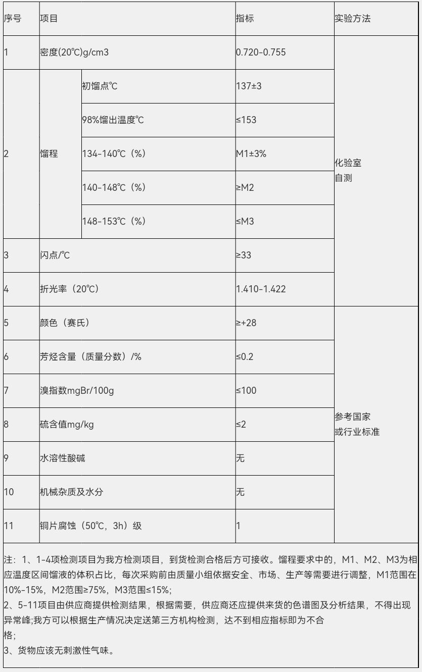 二、招標(biāo)內(nèi)容:碳?xì)淝逑磩ㄝp質(zhì)白油)采購(簡稱碳?xì)洌?