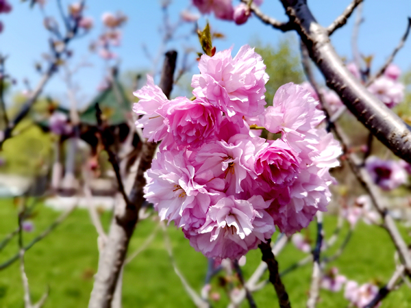 隨著梅花、迎春花、玉蘭花、杏花桃花的陸續(xù)謝幕,海棠花們開始華麗登場。有著藍(lán)天白云的映襯,明媚陽光照耀下的海棠花千嬌百媚,一團(tuán)團(tuán),一簇簇,你挨著我,我擁著你,粉粉嫩嫩,不正像走出病毒霧霾,露出久違笑容的人們的笑臉嗎?