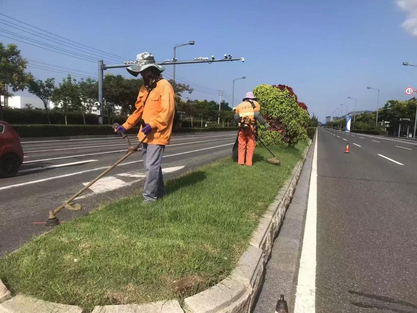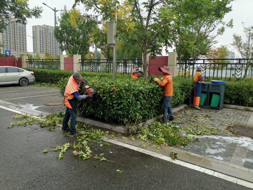 保障園區(qū)“塑新顏”。節(jié)日期間,開發(fā)區(qū)轄區(qū)的主干道上、公園、廣場(chǎng)、支路等公共綠地,隨處可見臺(tái)北(華茂)綠化養(yǎng)護(hù)人員堅(jiān)守一線的忙碌身影,他們放棄與家人團(tuán)聚,重點(diǎn)對(duì)玉竹路、佟圩路、銀臺(tái)路、242 省道等路段綠籬、模紋、草坪進(jìn)行整形修剪,對(duì)堿廠南路等路段綠化帶內(nèi)低矮喬灌木進(jìn)行打藥治蟲,對(duì)展覽中心、黃海大道等轄區(qū)內(nèi)及時(shí)清理綠化帶雜草、撿拾草根、干枝等綠化垃圾,保持綠化帶干凈整潔美觀。益豐園林分公司綠化班全員放棄節(jié)日休假,外拓市場(chǎng),與綠化分公司聯(lián)動(dòng)赴徐圩消防大隊(duì)院內(nèi)開展突擊修剪行動(dòng),他們不怕臟、不怕累,共修剪灌木球50余棵,灌木叢7000余平方米。