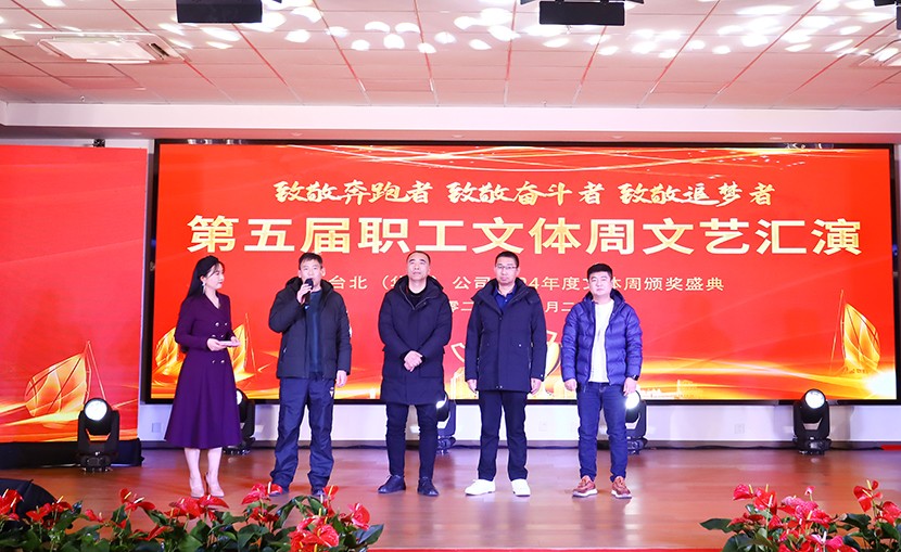 12月27日下午,臺北(華茂)公司第五屆職工文體周閉幕式暨頒獎文藝匯演活動在環(huán)保裝備產(chǎn)業(yè)園圓滿落幕。公司領(lǐng)導(dǎo)、各單位黨政工負(fù)責(zé)人(項目部負(fù)責(zé)人)、各部門負(fù)責(zé)人、星級員工、受表彰人員、演職人員觀看演出,特邀請集團紀(jì)委書記張興林,集團黨建人資部部長夏正斌、集團紀(jì)檢組組長王建松、集團工會副主席陸向東、集團紀(jì)委副書記喻敏等同志到場觀摩、指導(dǎo)。