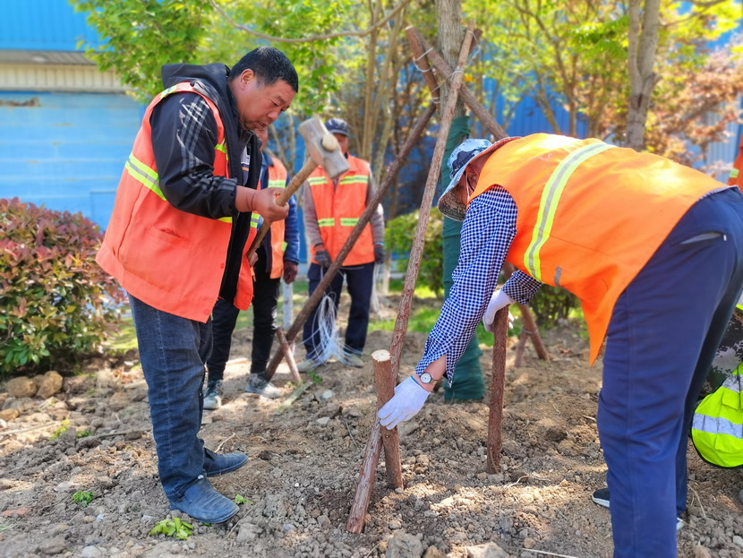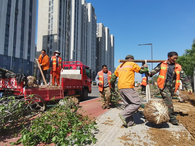 在中科院,只見工程車輛來來往往、橙色身影忙忙碌碌……到處都是一派繁忙、紅紅火火的景象。闖將孫玉虎,虎將金華穿梭在工程現(xiàn)場,親自指揮調(diào)度綠化工程收尾工作。大家分工有序:定點劃線、搬運苗木、栽植澆水、垃圾清理……有條不紊。中午時分,熾熱的陽光照在臉上也是火辣辣的,忙碌了一上午的工人大汗淋漓,擰開瓶蓋,咕嚕咕嚕喝了幾大口涼水,用袖子蹭了下額頭的汗,又干勁十足地投入到工作中。