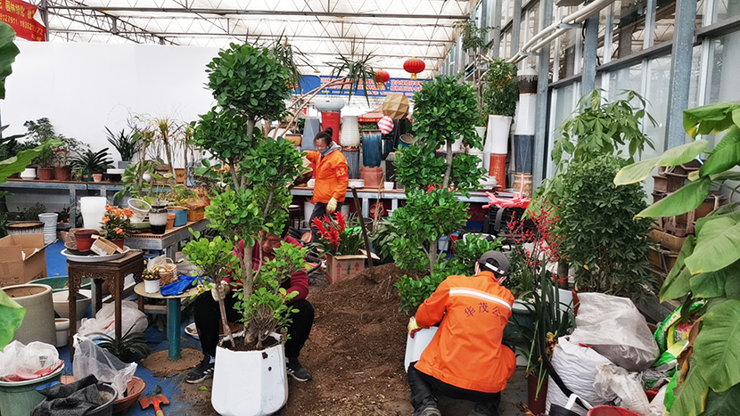 2月24日,走進(jìn)位于振興花卉城的華茂園藝項(xiàng)目部,室外冰天雪地,室內(nèi)忙碌的身影不斷穿梭……有的在配土上盆、有的在修剪養(yǎng)護(hù)、有的在擦洗裝飾,員工們分工協(xié)作、團(tuán)結(jié)一心、有條不紊地進(jìn)行花卉綠植的入盆及制作,開(kāi)足馬力增效益。