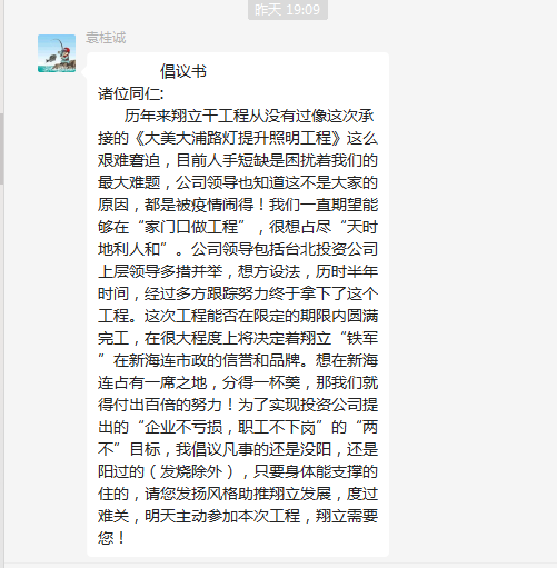 ? ? ? ??精兵強(qiáng)將,火速支援。疫情來勢兇猛,很多人都難逃魔爪,造成翔立用人短缺,面臨這種難題,翔立鐵軍經(jīng)受住了考驗。朱文江同志陽轉(zhuǎn)陰后,火速到崗,第一時間帶領(lǐng)大家繼續(xù)奮戰(zhàn);老黃牛喬以成同志已經(jīng)一個多星期每天吃住都在公司,就是為了自己能夠健健康康接著干;袁桂誠同志負(fù)責(zé)安全管理,但當(dāng)看到人員短缺,緊急上崗,一邊督促著大家安全生產(chǎn),一邊手頭上的活也沒停下;丁祥生同志輕燒不下火線,每天吃點藥準(zhǔn)時到達(dá)現(xiàn)場......正是有了這些敬業(yè)的人,翔立才能一次次在困境中走出去,在投資公司黨委的堅強(qiáng)領(lǐng)導(dǎo)下,翔立人將繼續(xù)發(fā)揚(yáng)鐵軍精神,昂揚(yáng)“四再”創(chuàng)業(yè)精神,淬煉“四拼”工作作風(fēng),攻堅克難,為臺北的發(fā)展拼盡每一份力!