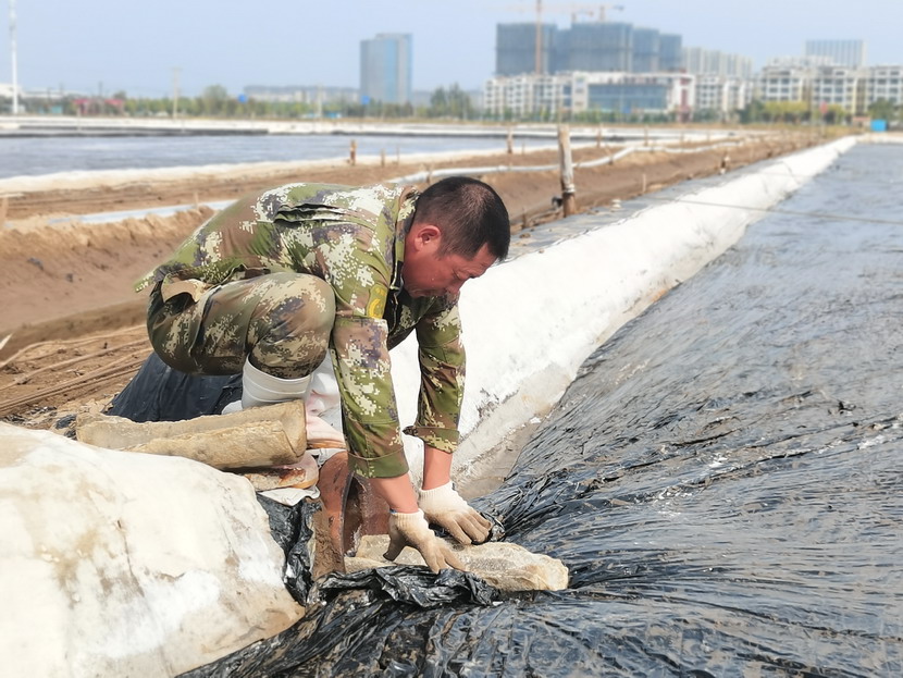 礦鹽班組根據(jù)天氣狀況做好雨前塑布苫蓋工作,確保勞動成果不受暴雨影響,最大化實現(xiàn)年產量,并利用扒鹽停機間隙做好灘地基礎工作,維護輸鹽管道及集鹽機,以便于扒鹽開機高效率運轉。