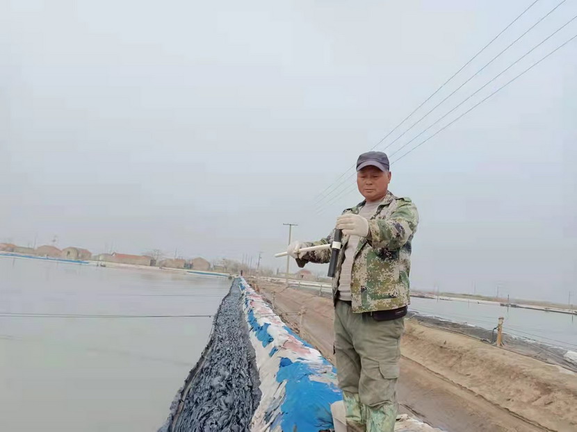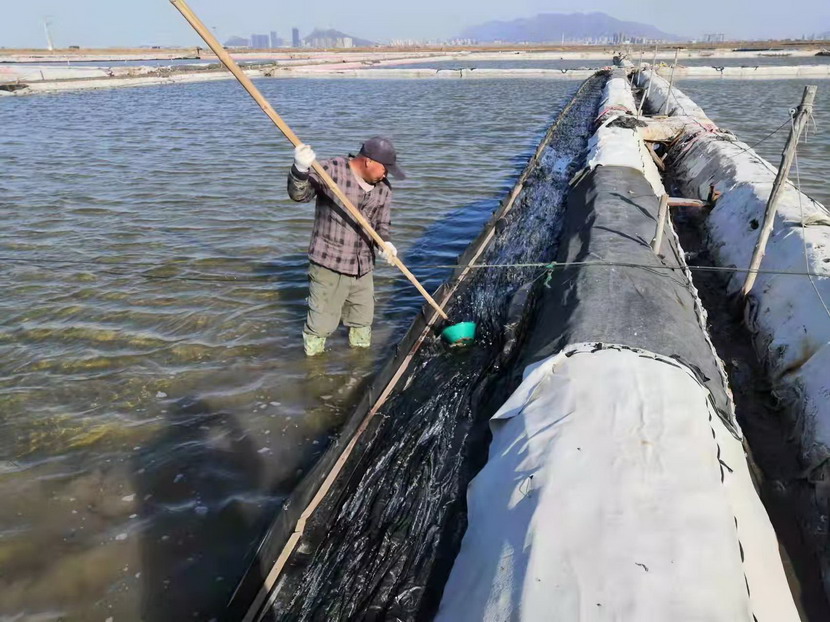 2021年,他服從公司生產(chǎn)機制的轉(zhuǎn)換,被安排到海濱三組18號灘作為領(lǐng)灘手,負(fù)責(zé)鈣液生產(chǎn)。為了不浪費每一毫米的蒸發(fā)量,每天天剛蒙蒙亮,就能看見他在縱橫阡陌的鹽田間穿梭,根據(jù)灘田結(jié)構(gòu)、針對不同季節(jié)確定走水路線,每天重復(fù)著調(diào)節(jié)鈣液、修整溝堰、修補塑布的工作,遇到大雨,他就不回家,守在灘上,及時把鈣液按照不同濃度引進鹵臺、鹵窖,雨水結(jié)束,第一時間把灘面淡水排掉,將鈣液回引進行晾曬。在生產(chǎn)面積僅有311畝的情況下,他每天要走3萬-4萬步,不僅對他自己的生產(chǎn)單元,對整片鈣液生產(chǎn)單元了如指掌,有多少閘門,多少電線桿,都了然于心。全年下來,生產(chǎn)鈣液28000方,在12個鈣液生產(chǎn)單元中名列前茅,領(lǐng)先超9000方,實至名歸的生產(chǎn)標(biāo)兵。