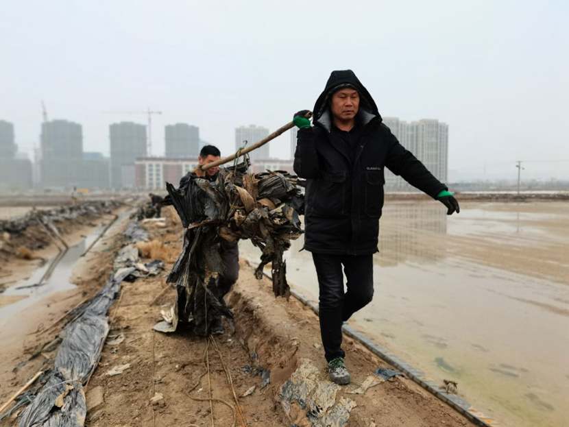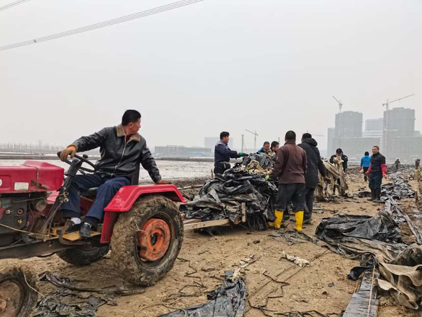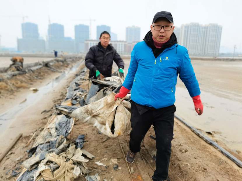 1月10日下午,第一批馳援隊伍——翔立分公司黨員突擊隊到達先鋒班組,結(jié)合海州灣公司黨員突擊隊共30余名隊員,穿戴好工作服、水鞋,兩人一組,三人一隊,雙肩挑,三人抬,緊張有序地清理生產(chǎn)現(xiàn)場拆除下來的廢棄的塑布、鋼絲等雜物。